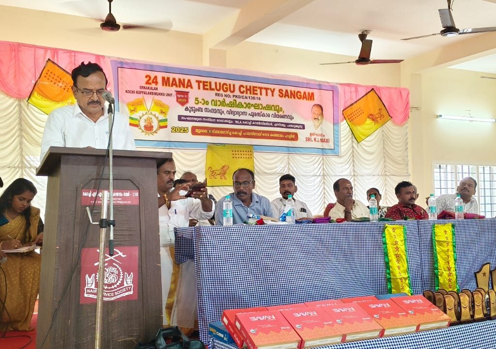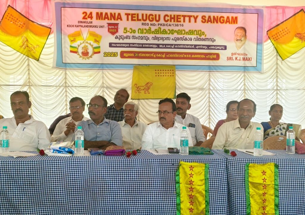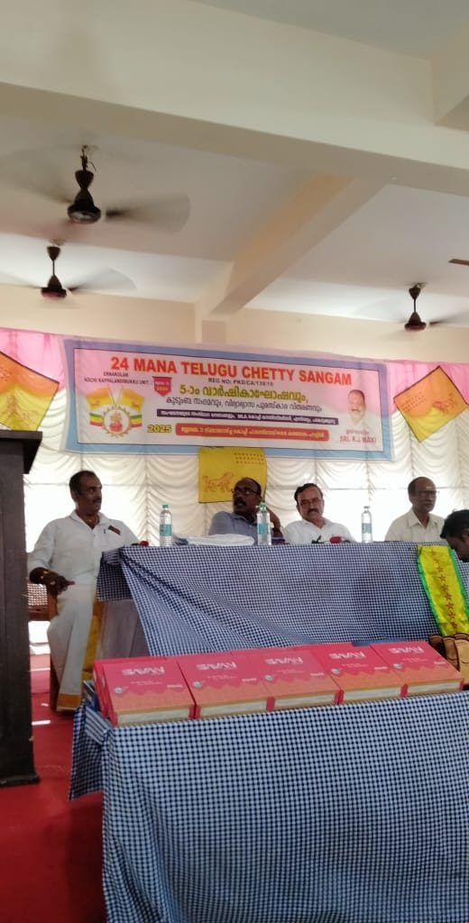 ആൾ കേരള 24 മനൈ തെലുങ്ക് ചെട്ടി സംഘം കൊച്ചി കപ്പലണ്ടിമുക്ക് യൂണിറ്റിന്റെ അഞ്ചാമത് വാർഷികാഘോഷവും, കുടുംബസംഗമവും, വിദ്യാഭ്യാസ പുരസ്കാര വിതരണവും, പൊതു യോഗം എന്നിവ 20.07.2025 ഞായറാഴ്ച രാവിലെ 10.00 മണിക്ക് പാലസ് റോഡ് N.S.S. കരയോഗം ഹാളിൽ വെച്ച് നടത്തപ്പെട്ടു. ബഹുമാന്യനായ കൊച്ചി എംഎൽഎ ശ്രീ കെ.ജെ. മാക്സി അവർകൾ യോഗം ഉദ്ഘാടനം നിർവഹിച്ചു സംസാരിച്ചു. യുണിറ്റ് പ്രസിഡന്റ് ശ്രീ. എസ്.കുമാർ അവർകൾ യോഗ അധ്യക്ഷനായിരുന്നു. എക്സിക്യൂട്ടീവ് അംഗം ശ്രീ.P.ആനന്ദ് എല്ലാവരെയും സ്വാഗതം ചെയ്തു. വിശിഷ്ടാതിഥികൾ: കൊച്ചി വാർഡ് കൗൺസിലർമാരായ ശ്രീ.M,ഹബീബുള്ള, ശ്രീ.J.സനിൽമോൻ എന്നിവർ പങ്കെടുത്ത് സംസാരിച്ചു.
